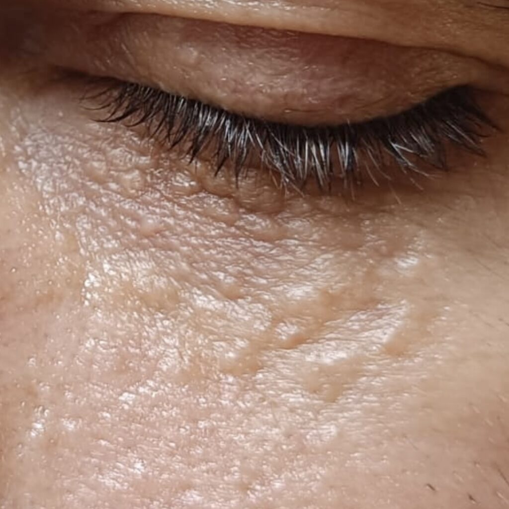 - Masajear los párpados verticalmente (hacia la raíz de las pestañas) para facilitar la salida de bacterias y de grasa.